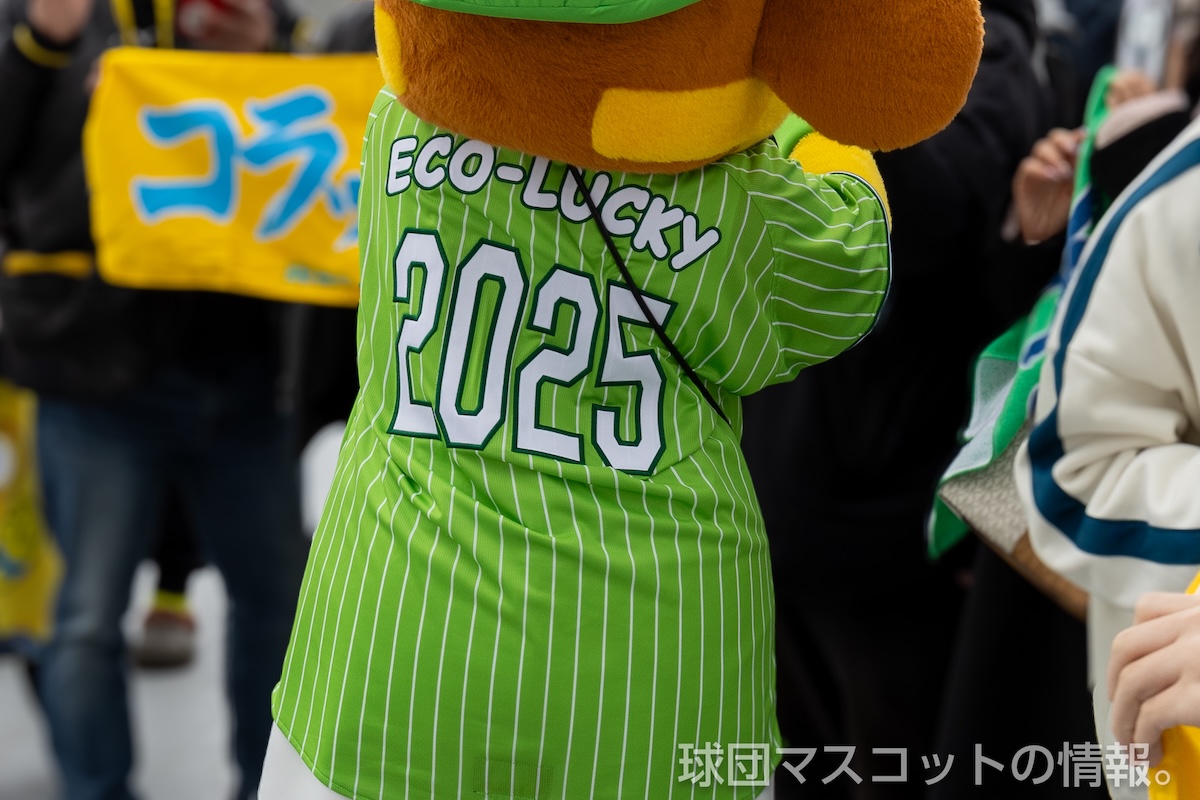 エコラッキーさんは、ゼロカーボンベースボールパークが進める、ひとり3つのエコで未来を変える「スリーECO、チェンジ!」をPRしています。